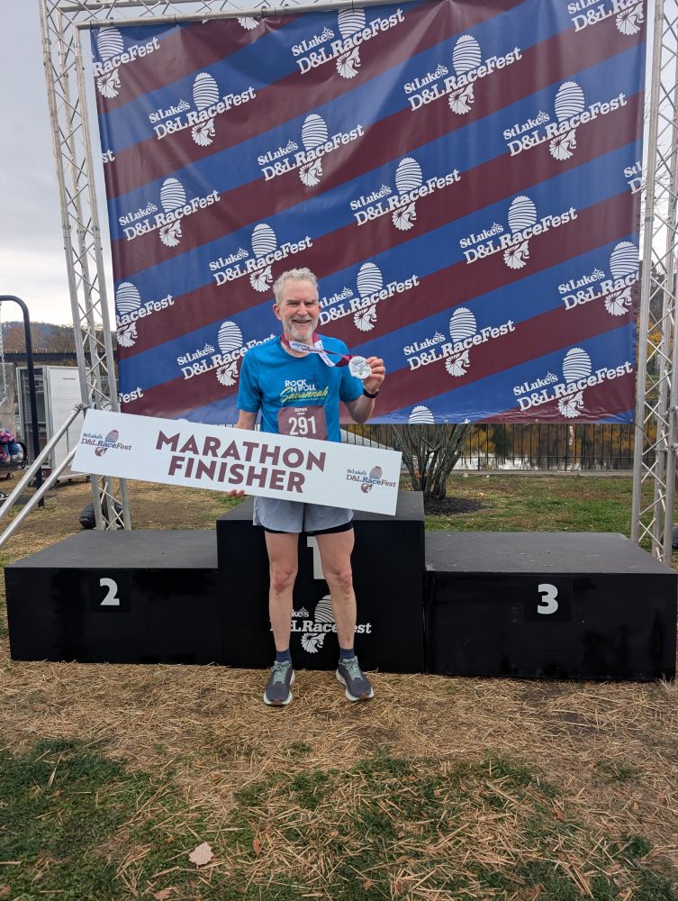 Congratulations to Upper School Principal Stephen Kolman who completed the St. Luke’s D&L RaceFest Marathon on Sunday, 9 November, from Allentown to Easton, Pennsylvania, in 3:32:07! He finished 2nd in his age group and 18th out of the 108 participants in the masters’ division over the age of forty. The St. Luke’s D&L Marathon is a USATF-certified, Boston Marathon qualifying race. D&L refers to the scenic and historic Delaware and Lehigh Trail which runs along those rivers.